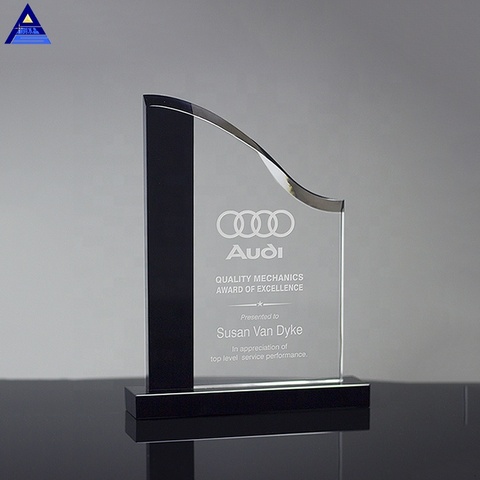 Logotipo personalizado gravado preto e transparente cristal, bloco de placa, escudo coroa obelisco cristal award troféu