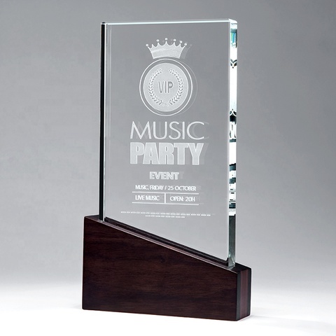 Tinh Thể Nhà Cung Cấp Nhà Máy Giá Tùy Chỉnh In Màu Trống Tinh Thể Gỗ Trophy Khắc Laser Tinh Thể Khối Giải Thưởng